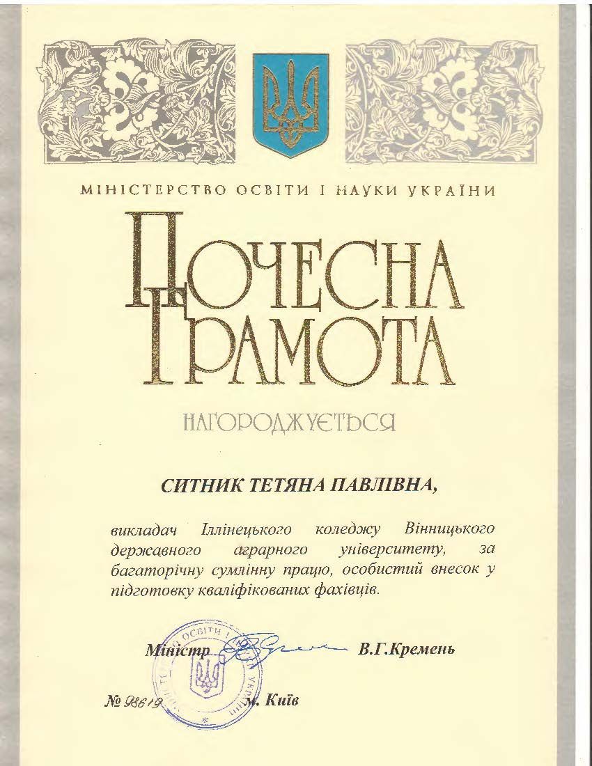 СИТНИК ТЕТЯНА ПАВЛІВНА