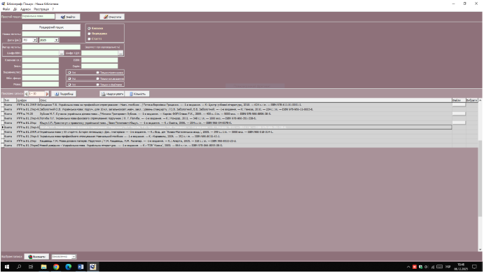 завантаження бібліографічних описів з бази даних імпорту, яка містить описи поширених підручників і надається в складі Пакету;