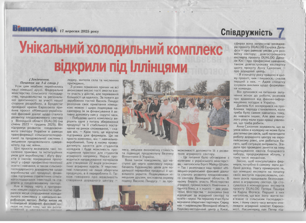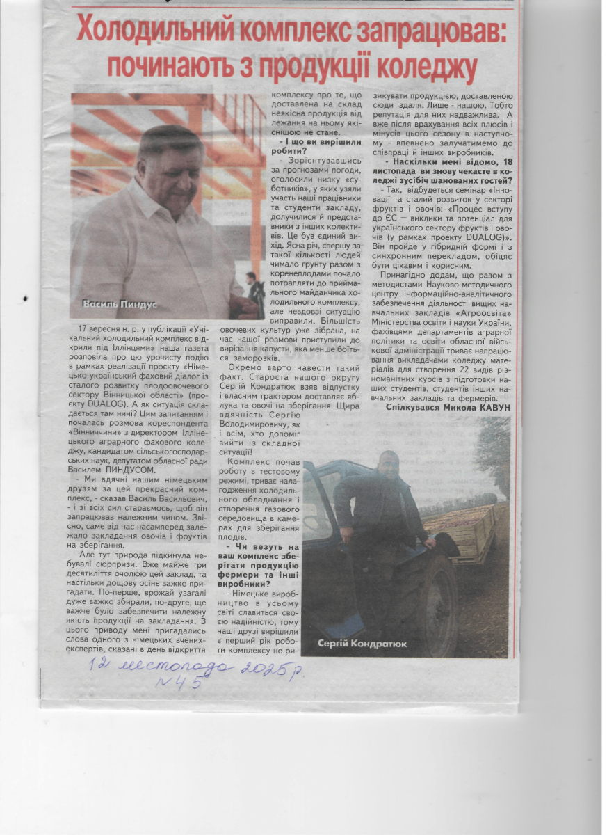 2025 Унікальний холодильний комплекс відкрили в Іллінецькому коледжі, розпочали з продукції коледжу.